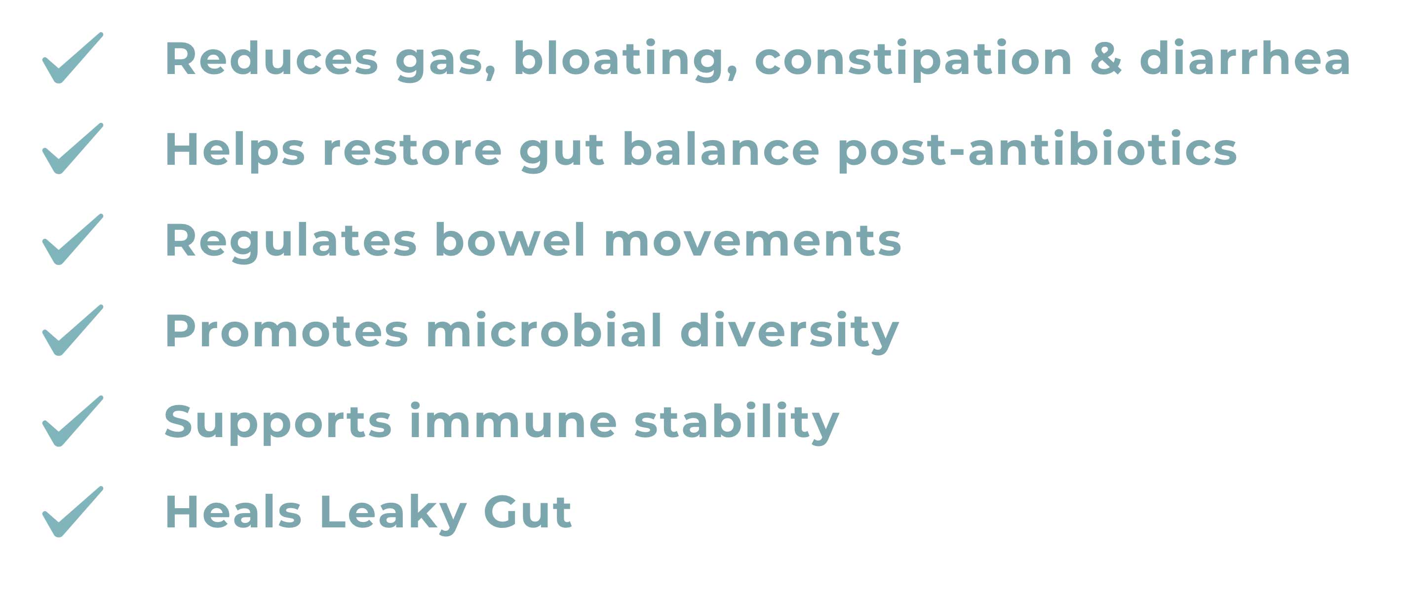 Organic Spirulina, Inulin, Sunflower Lecithin, Pineapple Juice Powder, Slippery Elm, Ginger, Astragalus, Reishi Mushroom, Shiitake Mushroom, Burdock Root, Artichoke Leaf Powder, Dandelion, 3 Billion Cells: Bacillus coagulans, Bacillus clausii, Bacillus subtilis.